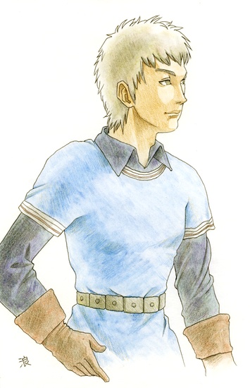 イケメンでメチャ強い、だけどお笑い芸人を目指していると言う愉快なキャラクターです。先日描かせていただいたエリィたちと共に旅をしています。