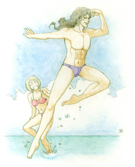そろそろ暑くなってきたので巷でも水着絵が増えそうですね。それにしても男性キャラメインの水着絵を描くのは初めてだったかも(笑)