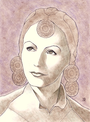 「マタ・ハリ」(1932)から。服飾のディテールは思いっきり省略していますが(苦笑) この映画では髪をオールバックにしているガルボも見ることができるのですが、もしかしたらそれがオリキャラのマレーネのデザインに影響しているかも知れません。