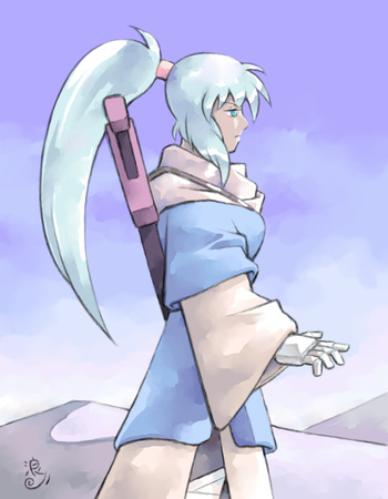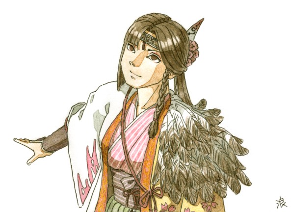 なこさんのオリキャラの潜(手裏剣を投げているキャラ)と私のオリキャラの忍(抜刀しようとしているキャラ)です。 お絵かきチャット以外での本格的な合作は初めての経験だったのでとても楽しかったです。なこさん、どうもありがとうございました(お絵かき掲示板とAzPainter使用)。